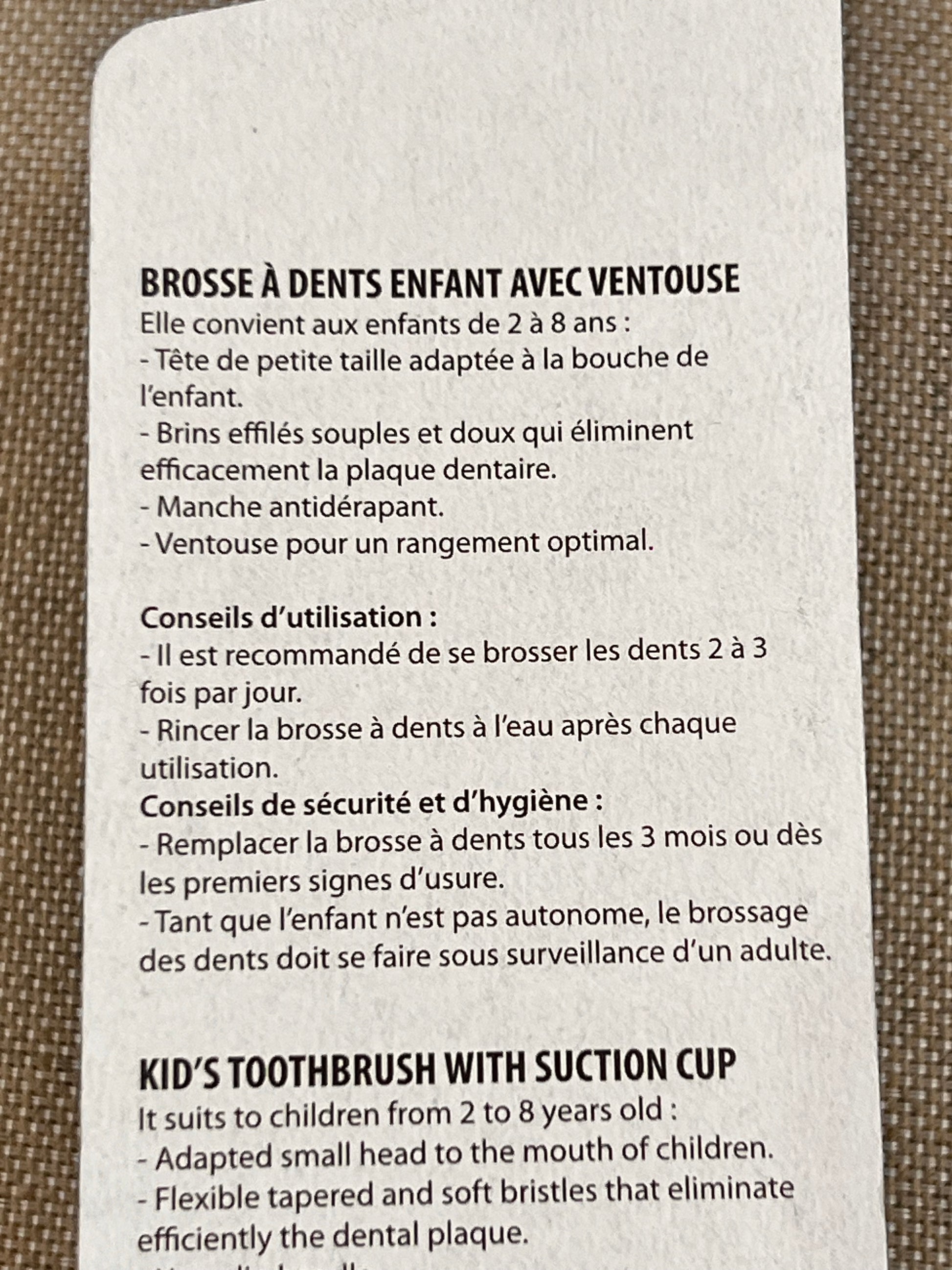 Brosse à dents enfants de 2 à 8 ans.