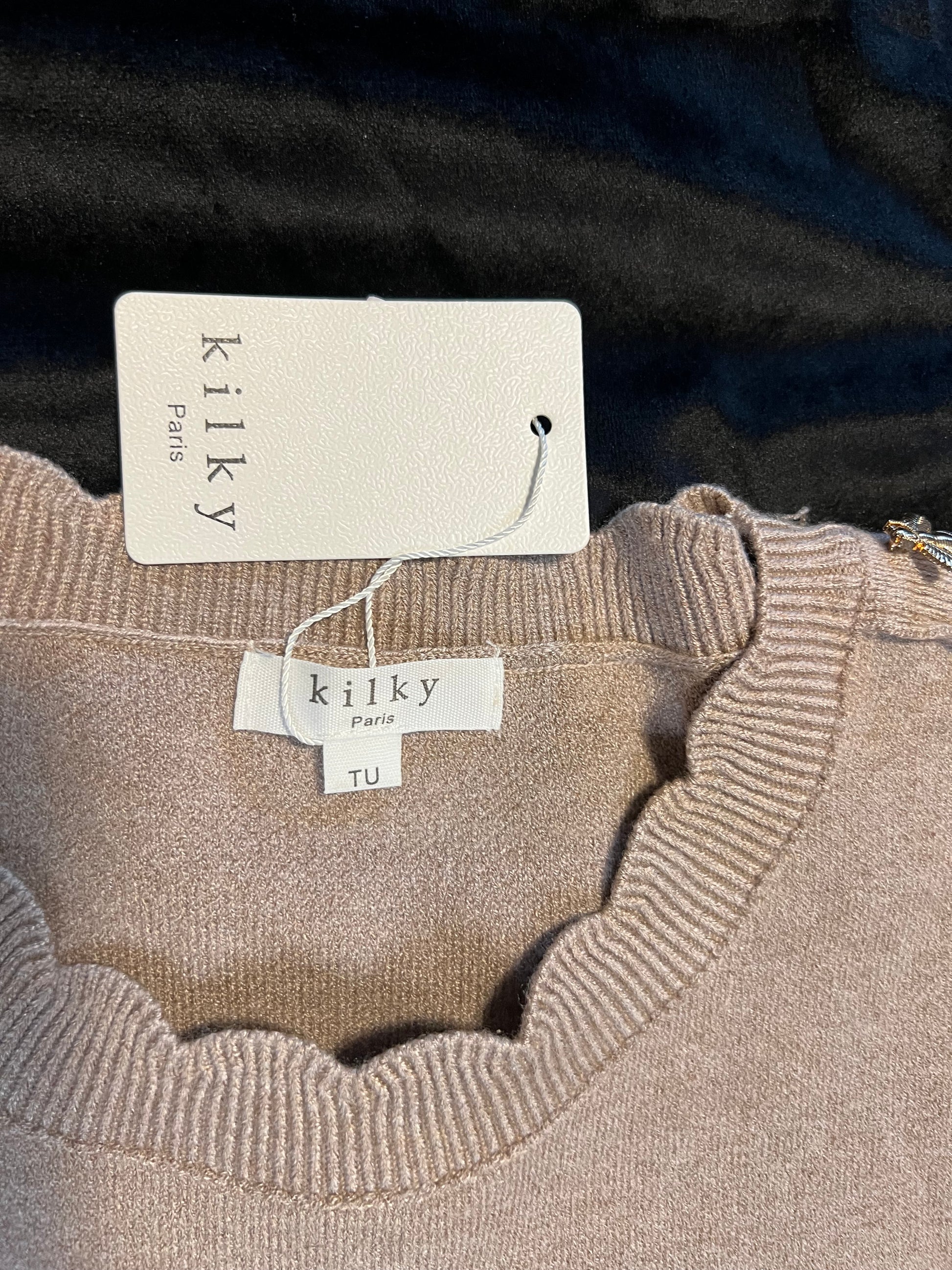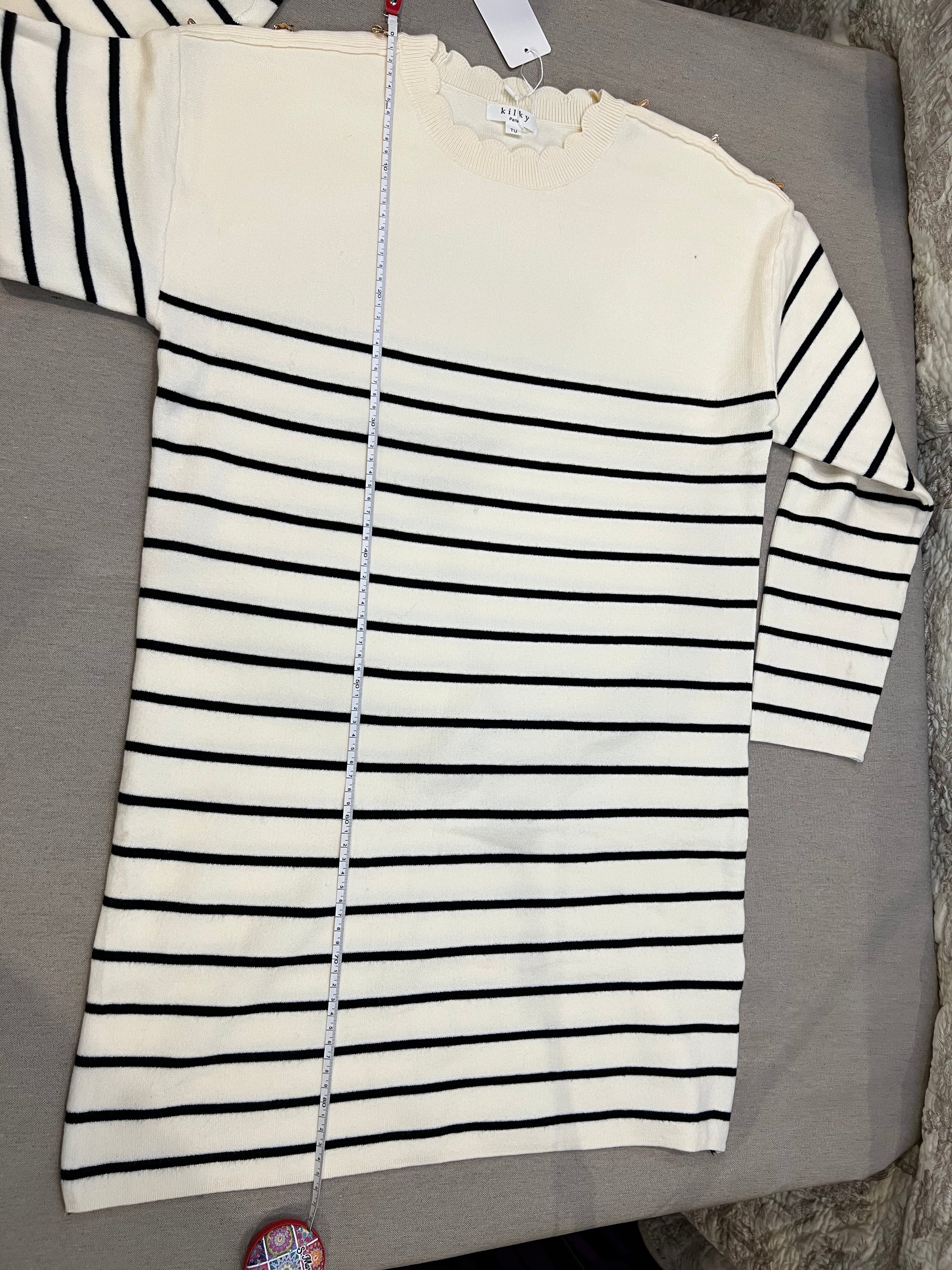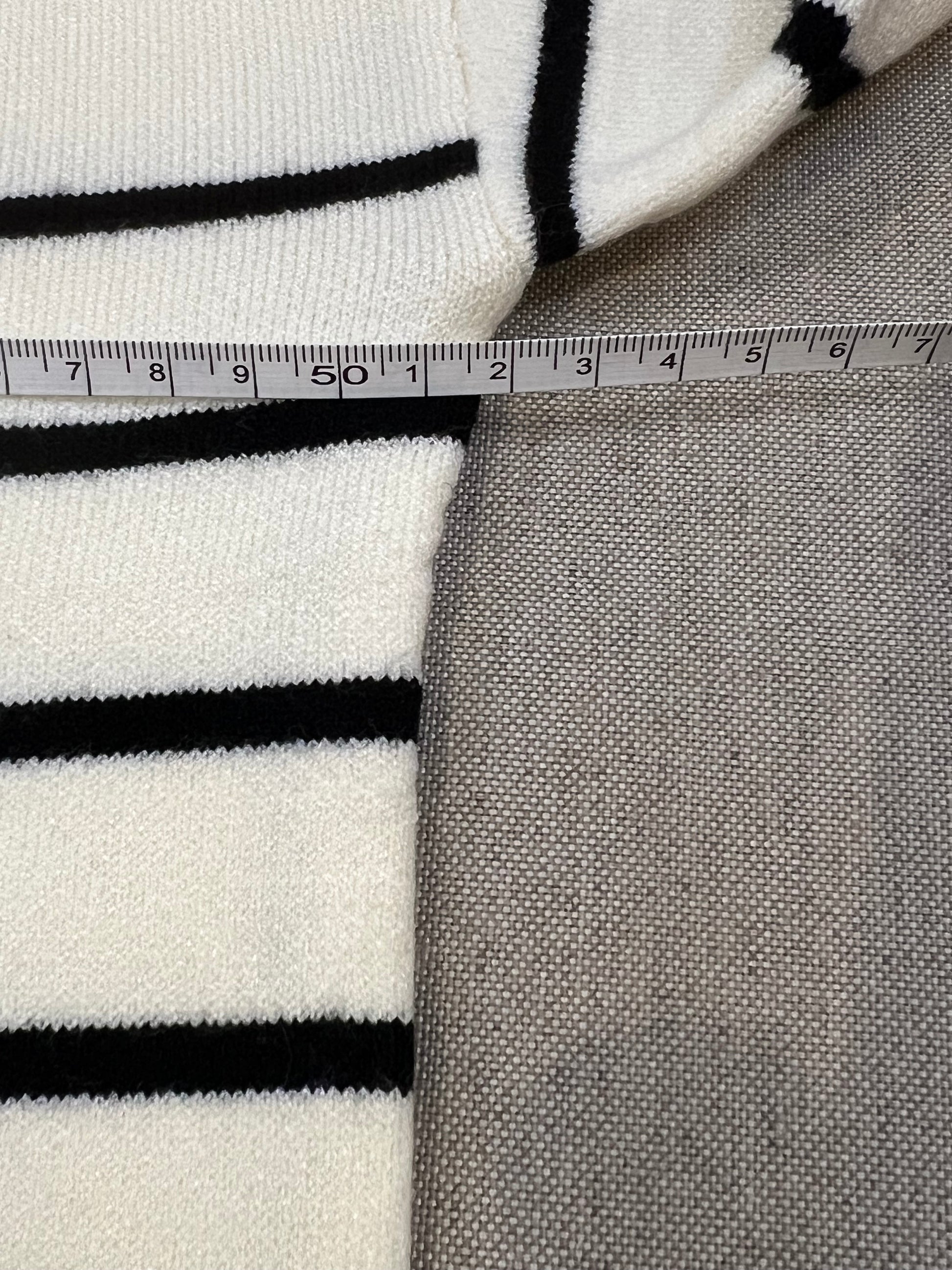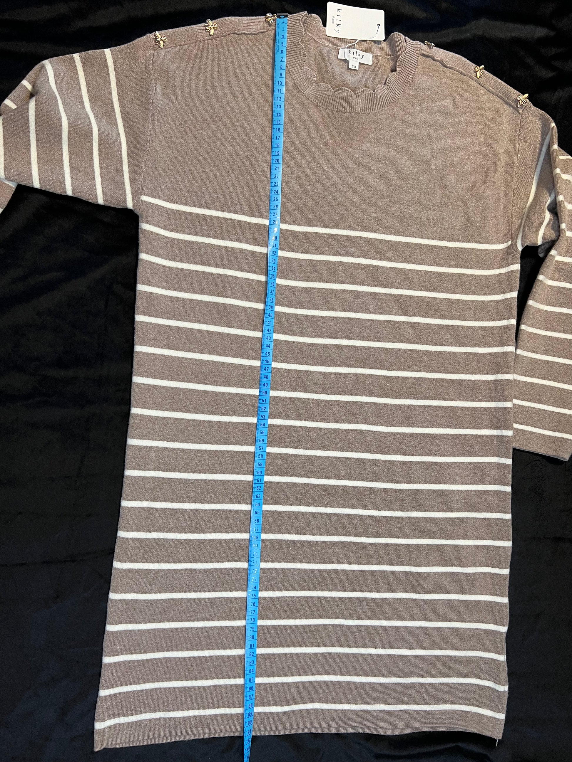 Crème - Noir : longueur 86 cm, poitrine 52 cm.
